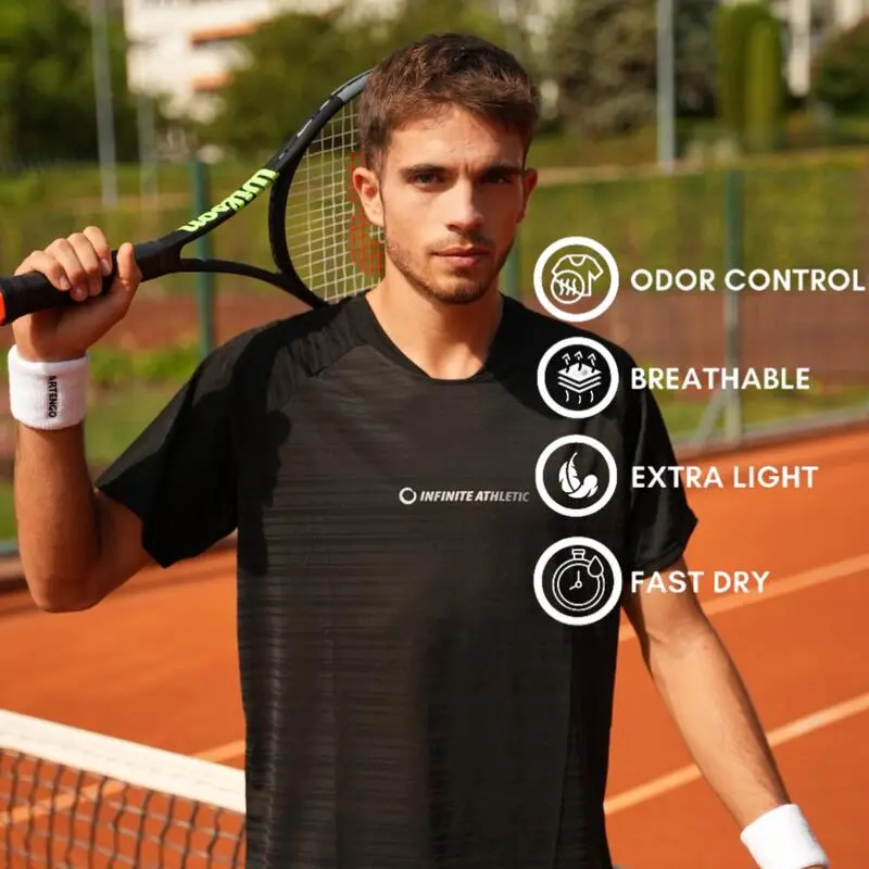 Compra en Decathlon Camiseta de tenis manga corta Hombre Infinite Athletic Pro Edition Negra la camiseta perfecta para practicar deporte fabricado con poliéster reciclado de los cordajes de raquetas de tenis. Una forma más sostenible de disfrutar del deporte. Son 100% reciclados y reciclables