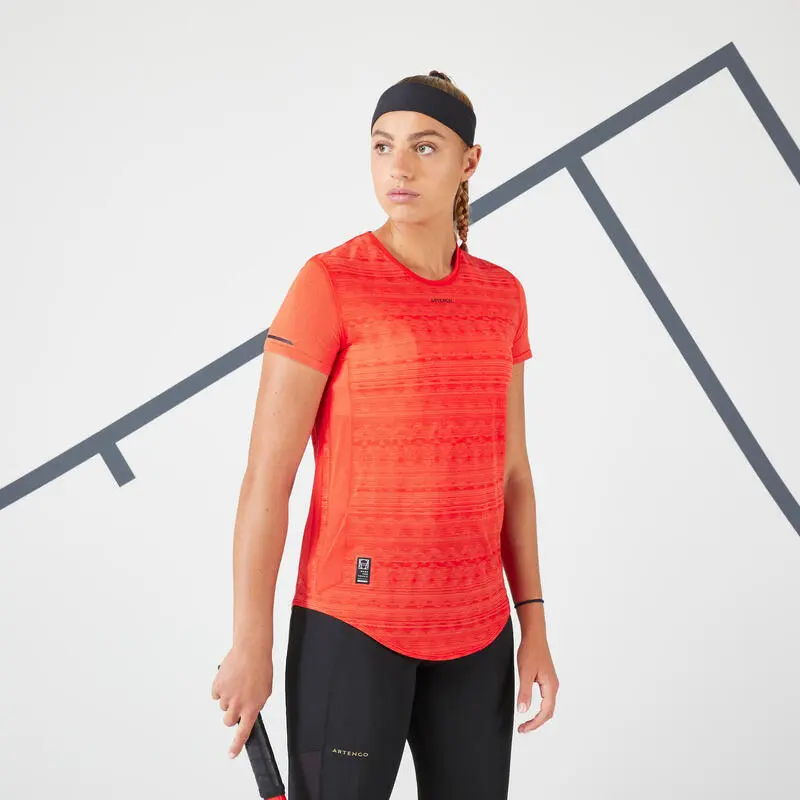 Compra en Decathlon Camiseta de tenis manga corta mujer Artengo Light 990 coral Esta camiseta de tenis sin costuras ha sido concebida para usarse en partidos o entrenamientos durante todo el año